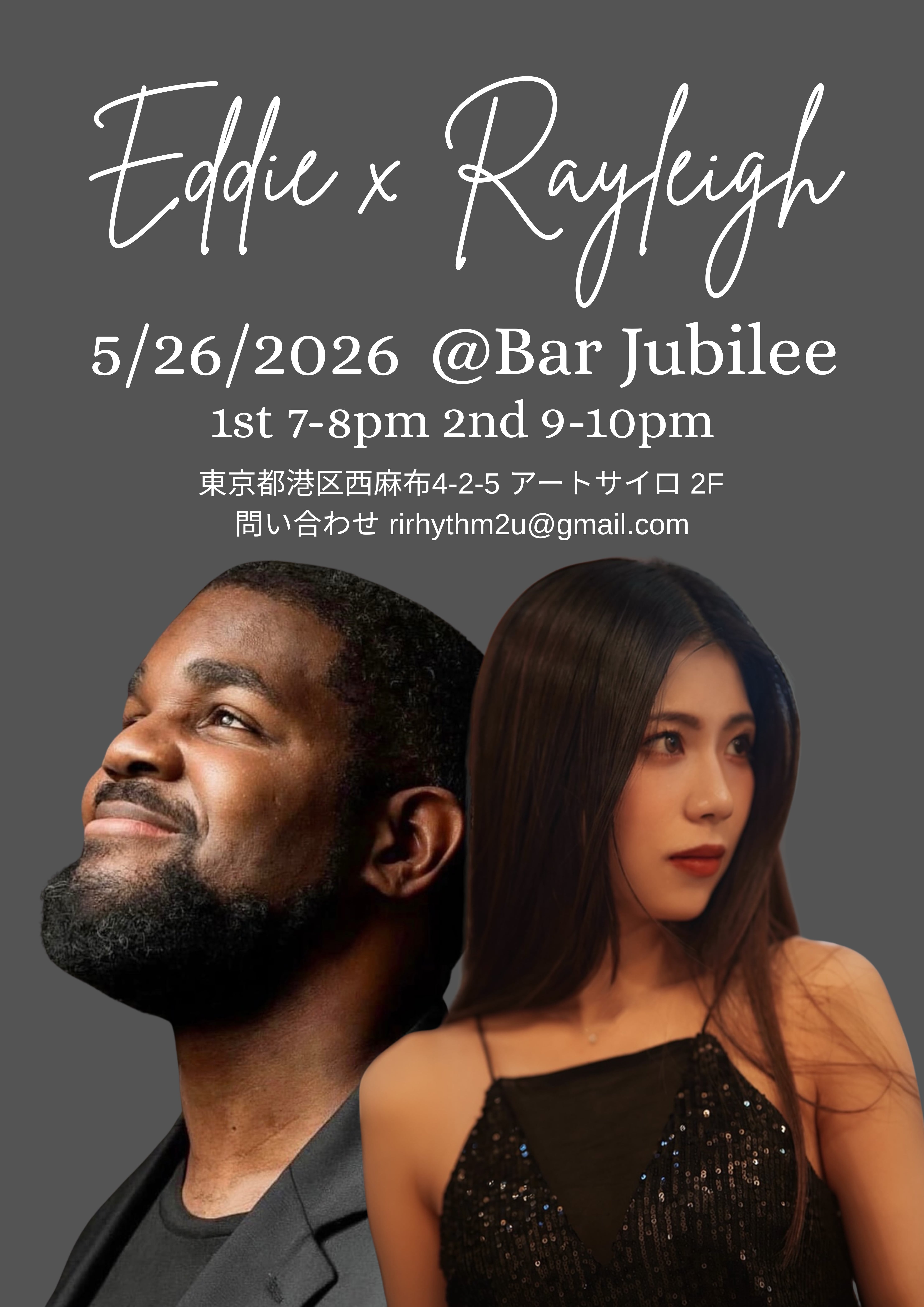 Eddie x Rayleigh によるスペシャルライブを Bar Jubilee にて開催します。
